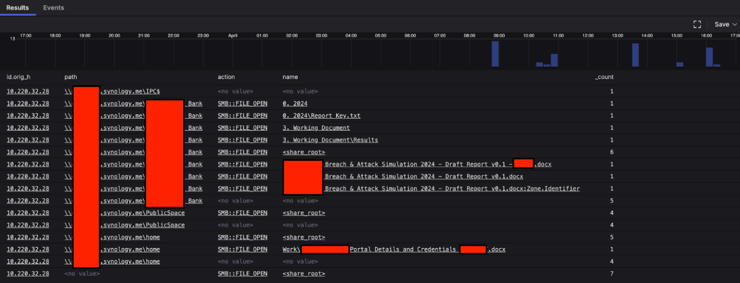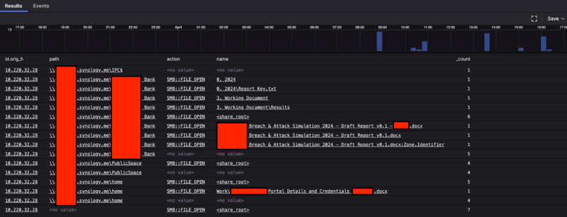 The remote hostname matched a subdomain used for Synology remote access, so it appeared that the attendee was connecting to their home NAS. The plot thickened when I saw that they were accessing some rather sensitive documents regarding a Japanese bank’s security testing plans. One of the files accessed contained credentials and API endpoints!