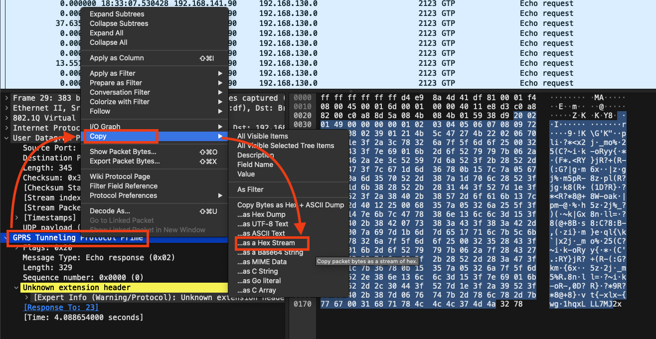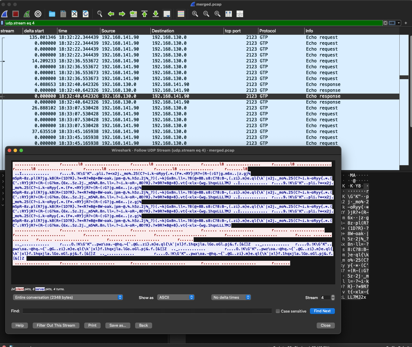 So, assuming this conversion is correct, I expected to see this byte sequence traversing the network in the GTPDOOR traffic, as this is the “magic byte sequence” that the malware uses to authenticate commands.