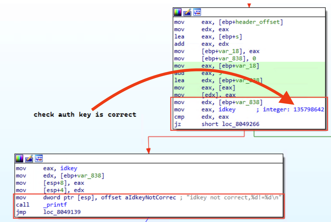 In this case, there was one “key” piece in the HaxRob blog that stood out to me–the default XOR key was baked into the malware sample. Below is a screenshot of the portion of malware code that checks for that key.