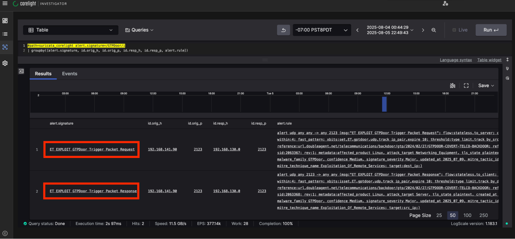 The story starts while I was hunting through our detections in Investigator, Corelight's Open NDR SaaS Platform, when two Suricata® alerts caught my eye: