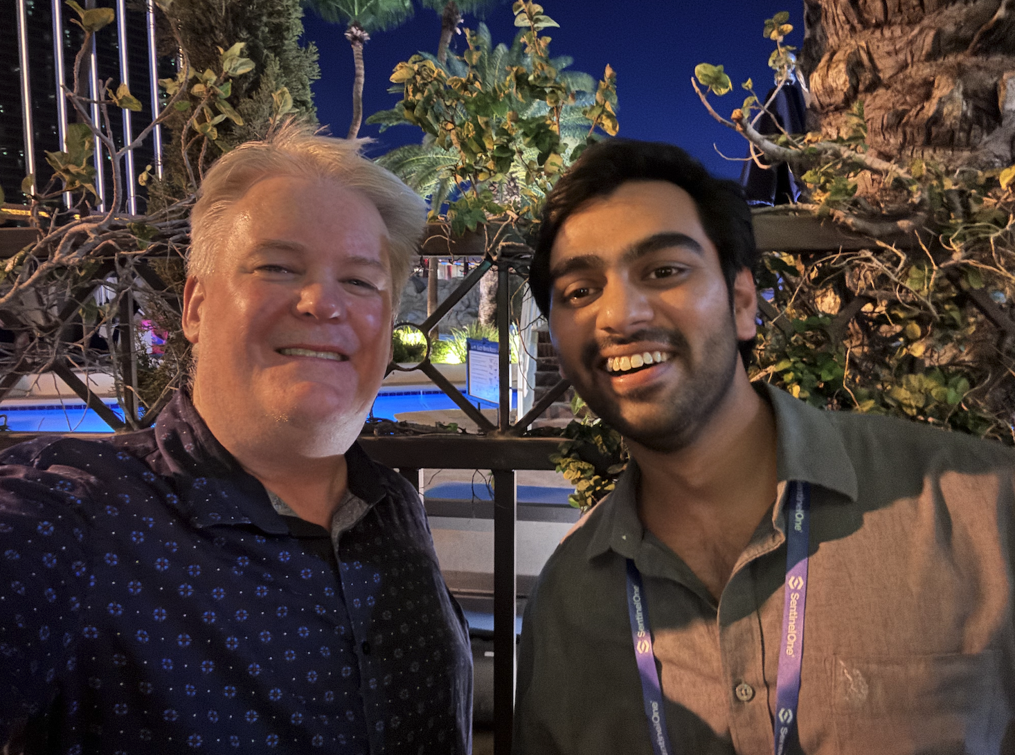 That evening, I was lucky enough to score an invite to the Black Hat speaker's dinner at the Border Grill at the Mandalay Bay Resort. Toward the end of dinner, a large catering cart was being ushered through the large crowd of speakers. I and the fellow next to me both jumped back, standing side-by-side looking down at our toes to make sure the cart didn't run us over. I looked up at him and said, "mind your toes everyone." And then I paused. I thought, wait a second, this guy looks familiar. I asked, "By any chance, are you giving a talk on 5G?" He smiled and said yes. I found Altaf!