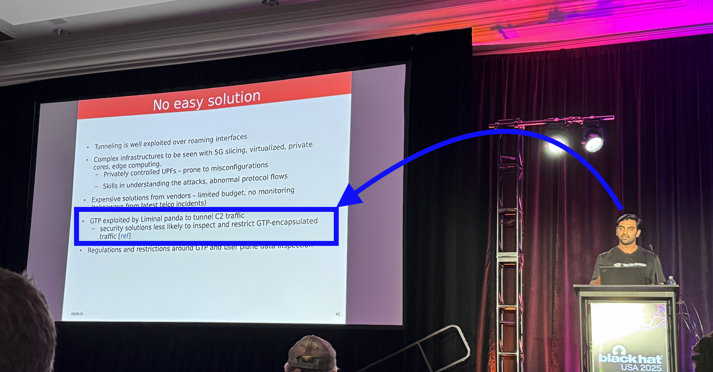 The next day I attended my new pal Altaf's “5G Titanic” briefing, where GTPDOOR was mentioned. I was also glad to see him in the NOC summary briefing by Bart, Grifter, Pope, and Spicer at the end of the conference.