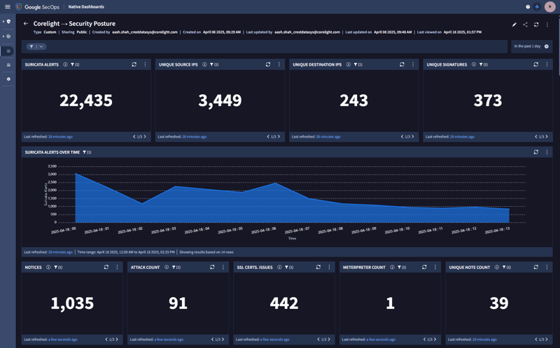 Example of dashboards for Google SecOps and Splunk Enterprise Security
