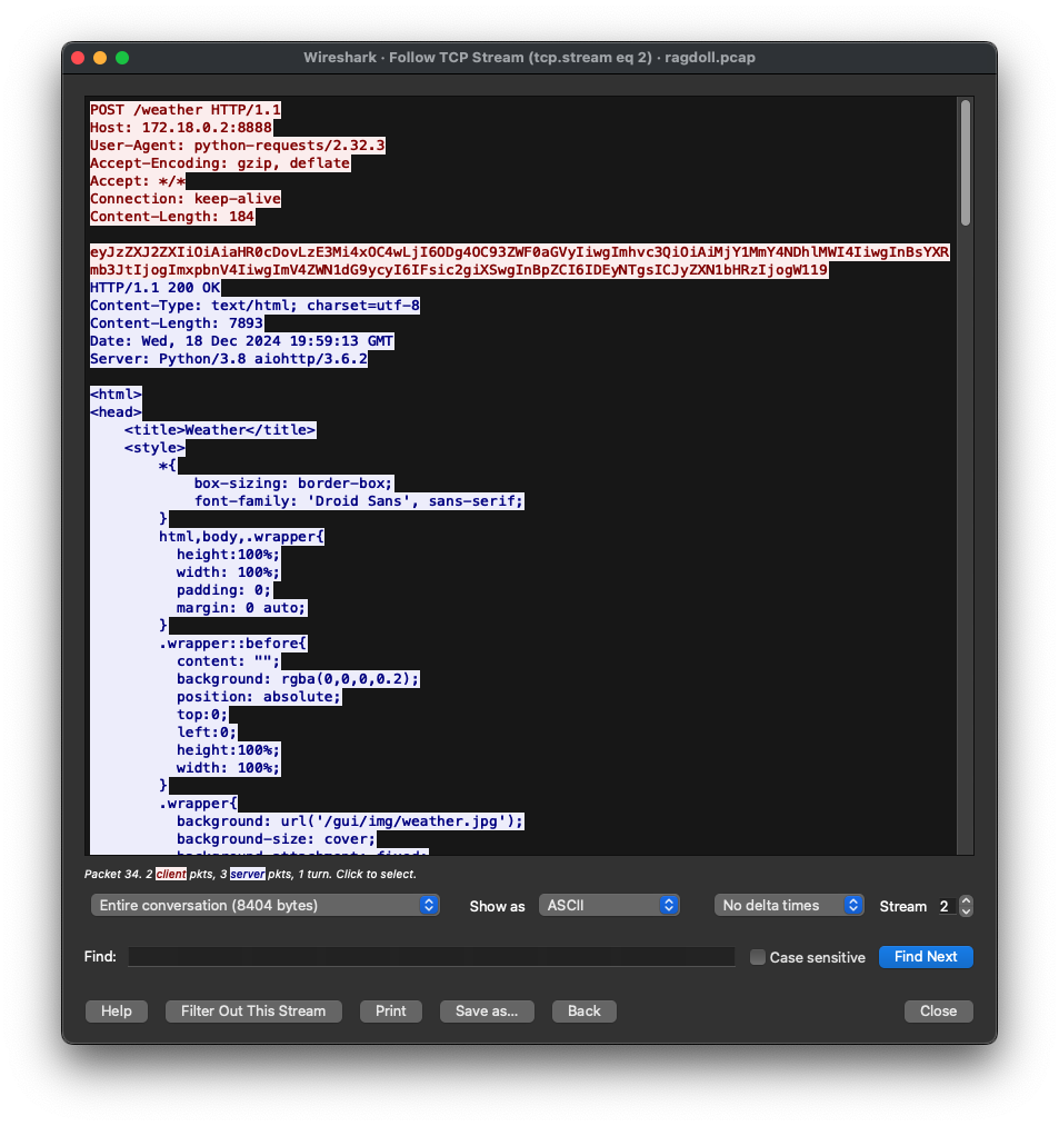 Ragdoll uses the URI “/weather” with a Python user agent: