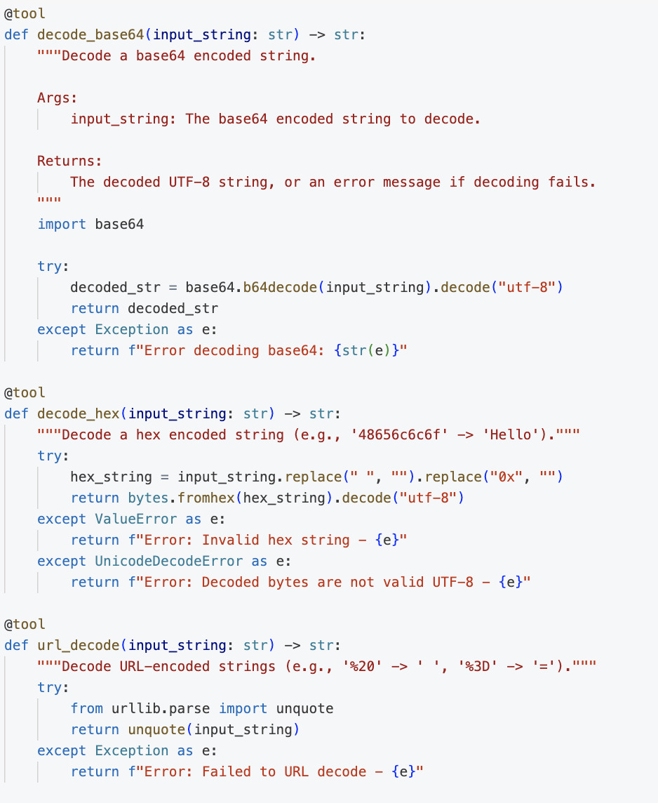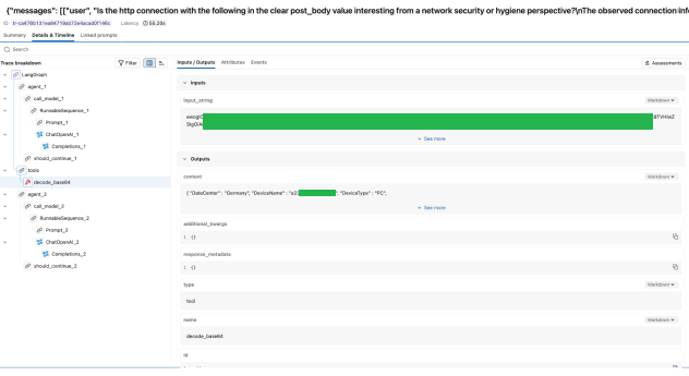 Curious to understand the inner workings of the ReAct agent, I dug up its execution traces. While we provided a toolset designed for multi-step transformations, the agent’s internal reasoning was robust enough to “look through” the encoded payload and successfully map a valid Base64 string to the decode_base64 tool in a single move. Analyzing just one segment was enough for the agent to identify the issue, stop the loop, and generate a high-confidence finding. This demonstrated the flexibility of the approach, as the agent was not confined to a single rigid path to reach a conclusion.