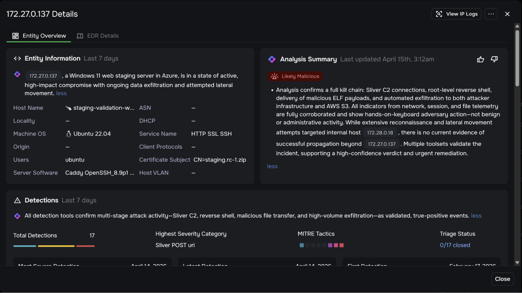 Maybe you get a severity score, an IP address,or a graph that looks important. But what you do not get is the information that helps you make a decision: what protocol behavior triggered it, what the host actually did, who owned it, what it normally talks to, what changed, and what evidence supports the claim. It's like being handed a beautifully framed diagnosis that just says "bad feelings."