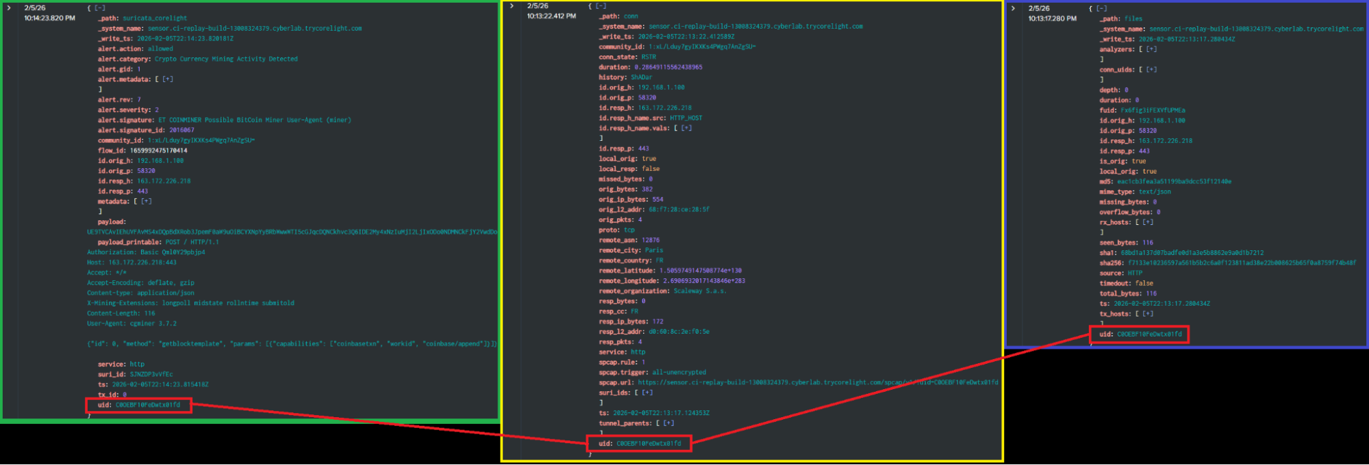 The cure is fewer useless decisions, not necessarily fewer alerts. Corelight helps by giving analysts a way to follow the plot instead of chasing pop-ups—it assigns a UID per log record, so you can stitch events into a coherent session story. What kicked it off, what it talked to, what changed midstream, and how it ended, all tied together instead of scattered across forty alerts and yearning for simpler times. Once you can pivot by UID and build a timeline, you can suppress the known-good noise with confidence and keep the real attacker behavior from getting washed away in the alert flood.