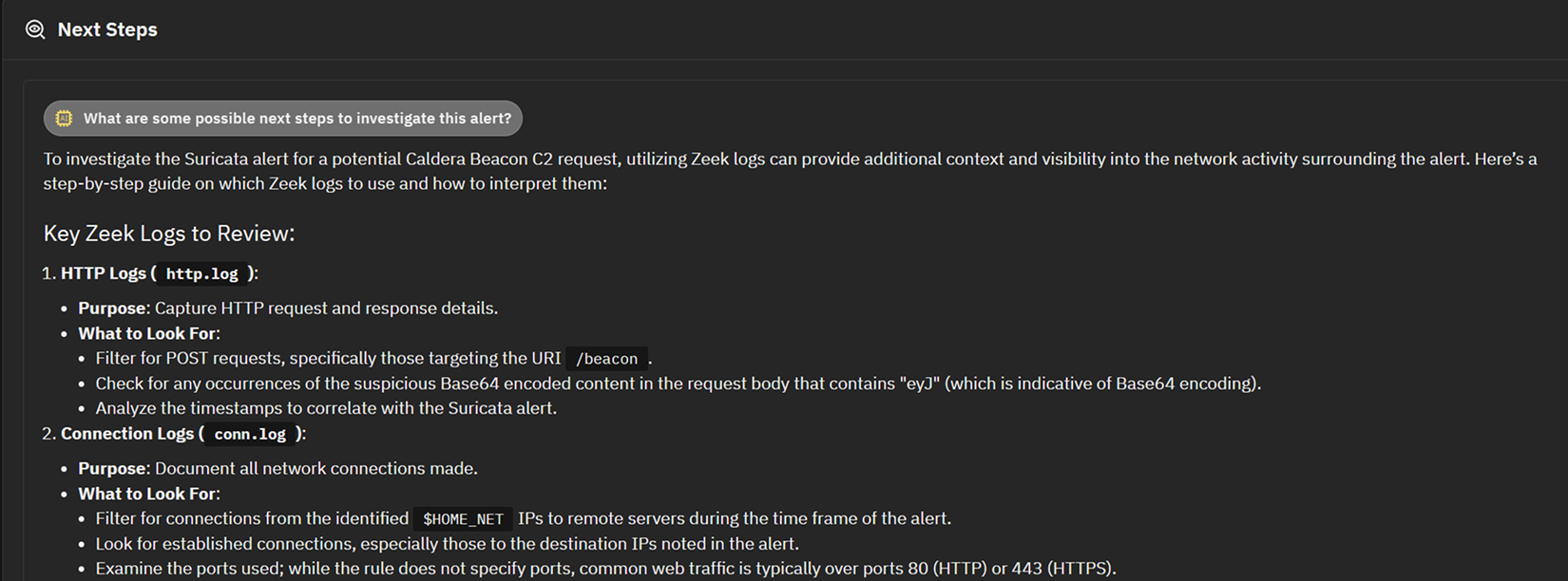 Corelight expert-authored workflows combine AI, LLM, and network context while ensuring privacy of data.
